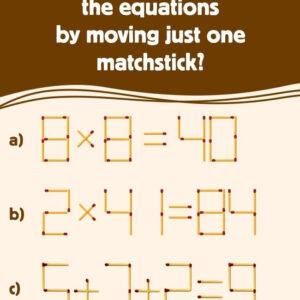 Are you ready for a fun challenge? Can you solve these matchstick equations by moving just one matchstick? The equations may look simple, but there’s a trick!…