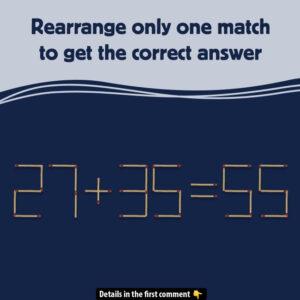 Ready for a fun brain teaser? Can you solve this tricky matchstick puzzle? The equation looks simple, but there’s a catch. You can only move one matchstick…