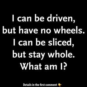 Are you up for a challenge? Here’s a tricky riddle to test your thinking: “I can be driven, but have no wheels. I can be sliced, but…