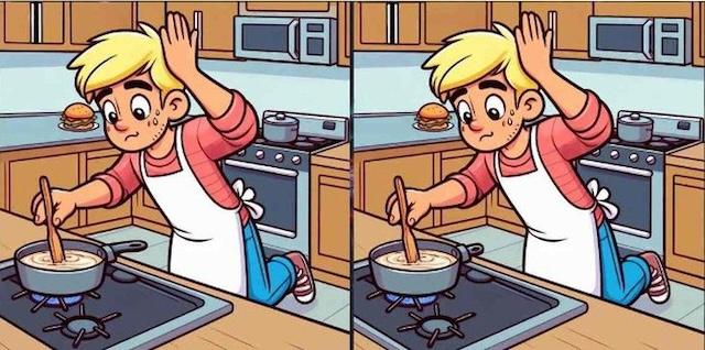 Visual puzzles like this one are a great way to engage your brain and improve your observation skills. Each detail matters, and even small differences can be tricky to catch! Take a close look at these two images of a boy cooking on the stove, and see if you can find the three differences between them. Let us know your answers in the comments and see how quickly you can solve it!