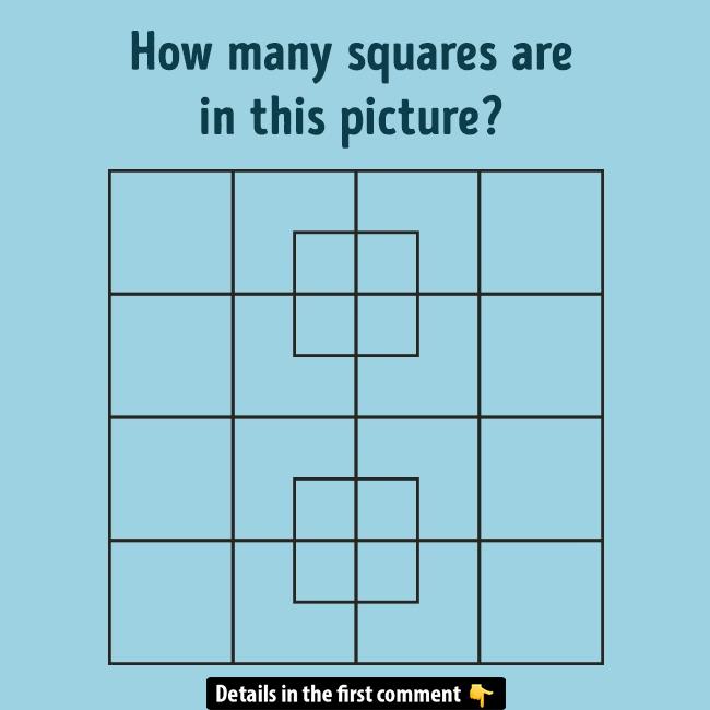 Are you ready to test your brainpower? In this puzzle, the challenge is simple: count how many squares are in the image! At first glance, it might seem easy, but there’s a trick – you need to count both the big squares and the smaller squares inside. Can you do it?