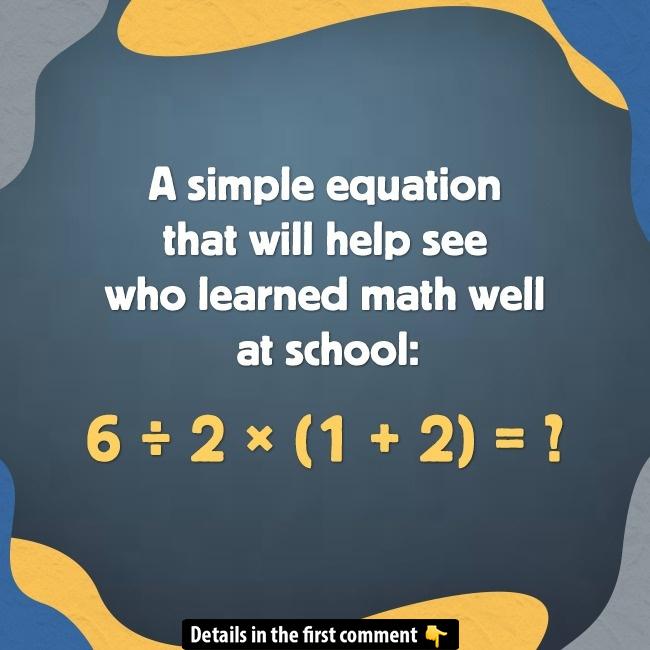 Welcome to this quick math challenge! It’s a simple equation, but it’s a great way to see who really remembers their school math. Try solving this one, and let’s see if you can get it right. Here’s the equation: